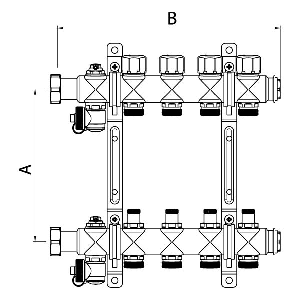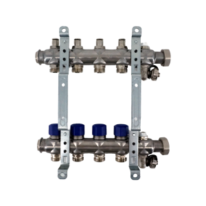 Коллекторная группа, ELSEN, 1, 4 контура, размер отвода-3/4, PN, бар-4, T°C -от 0 до +70, EMi02.04, с вентилями, нержавеющая сталь купить
