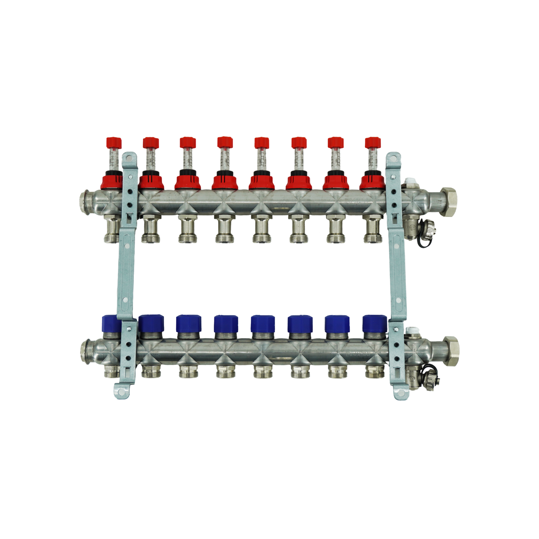 Коллекторная группа, ELSEN, 1, 8 контуров, размер отвода-3/4, PN, бар-4, T°C -от 0 до +70, EMi03.08, с вентилями и расходомерами, нержавеющая сталь