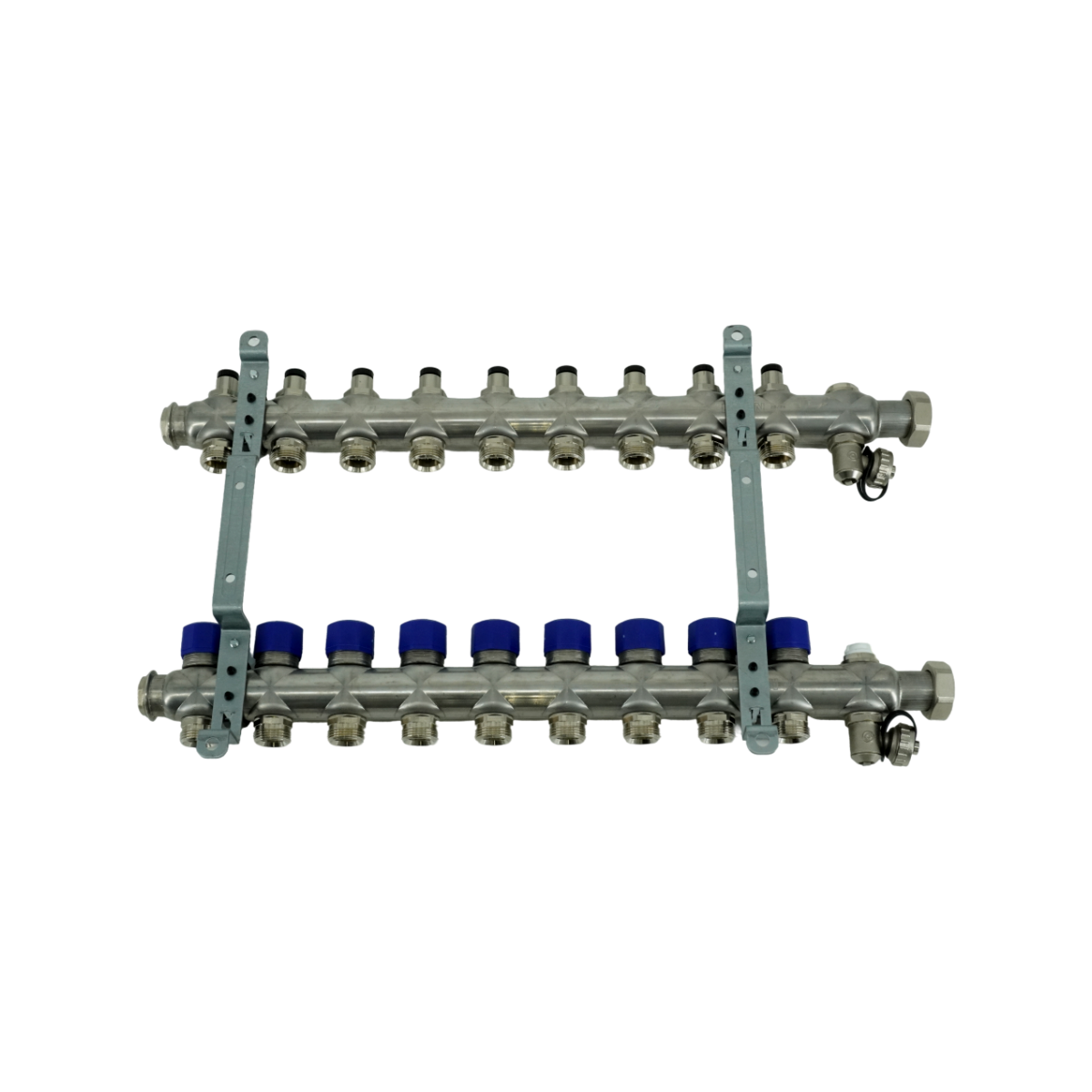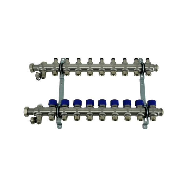 Коллекторная группа, ELSEN, 1, 9 контуров, размер отвода-3/4, PN, бар-4, T°C -от 0 до +70, EMi02.09, с вентилями, нержавеющая сталь купить