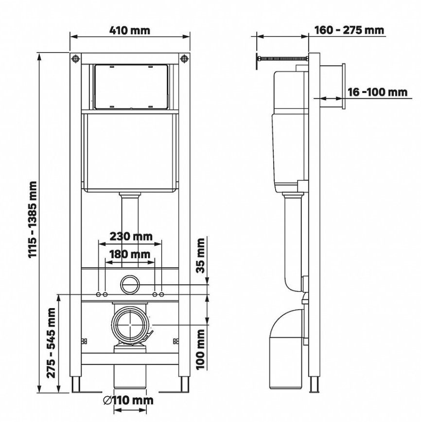 Полный Комплект ATOM Line для монтажа подвесного унитаза: инсталляция, cтальная рама с антикоррозийным покрытием, кнопка хром глянец, унитаз Gamma, сидение полипропилен Gamma PS с микролифтом.Расчётная нагрузка до 400 кг.Ножки c регулировкой высоты.Межосевое расстояние под крепежные шпильки унитаза 18 и 23 см.Бачок с функцией шумоподавления.Двухрежимная кнопка смываЭконом слив 3л, полный слив настраивается от 5,5 до 8,5л Монтажный кнопочный узел, полный комплект патрубков, лекала для монтажа отверстий; унитаз Gamma Rimless 52см, сидение полипропилен Gamma PS с микролифтом. Все крепежи для установки в комплекте. Гарантия 10 лет.