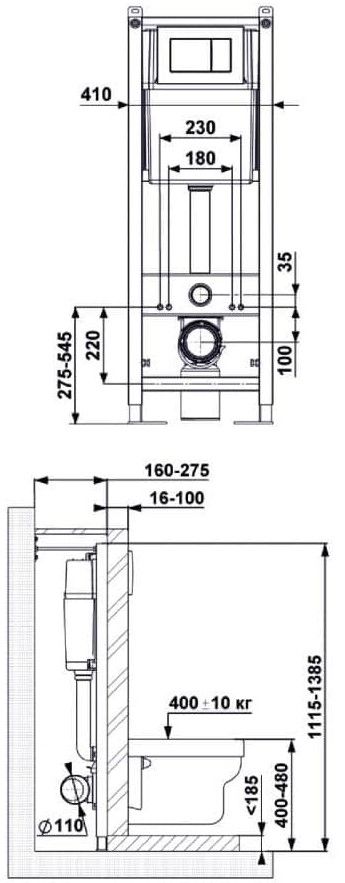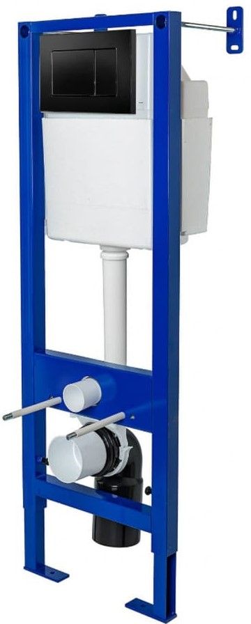 Инсталляция АТОМ 410Узкая рама шириной 410 мм.Регулировка по длине: 1115-1385 мм.Металлический каркас, окрашенный антикоррозийной эмалью.Расчетная нагрузка 400кг. Объём резервуара воды 10 л с тепло- и шумоизоляцией.Подвод воды внутрь резервуара (G1/2 наружная).Объем смыва 3/6 литра с возможностью регулировки.Управление механическое, две кнопки.Межосевое расстояние под шпильки для подвеса унитаза 18 и 23 см. Полный комплект для установки включает в себяшумоизоляционную прокладку и лекало для монтажных отверстий. Кнопка АТОМ черная Soft Touch Унитаз GAMMA каскадный смыв, открытый ободокантибактериальное покрытиеэкономия воды Сиденье дюропласт Gammaмикролифт, быстросъем