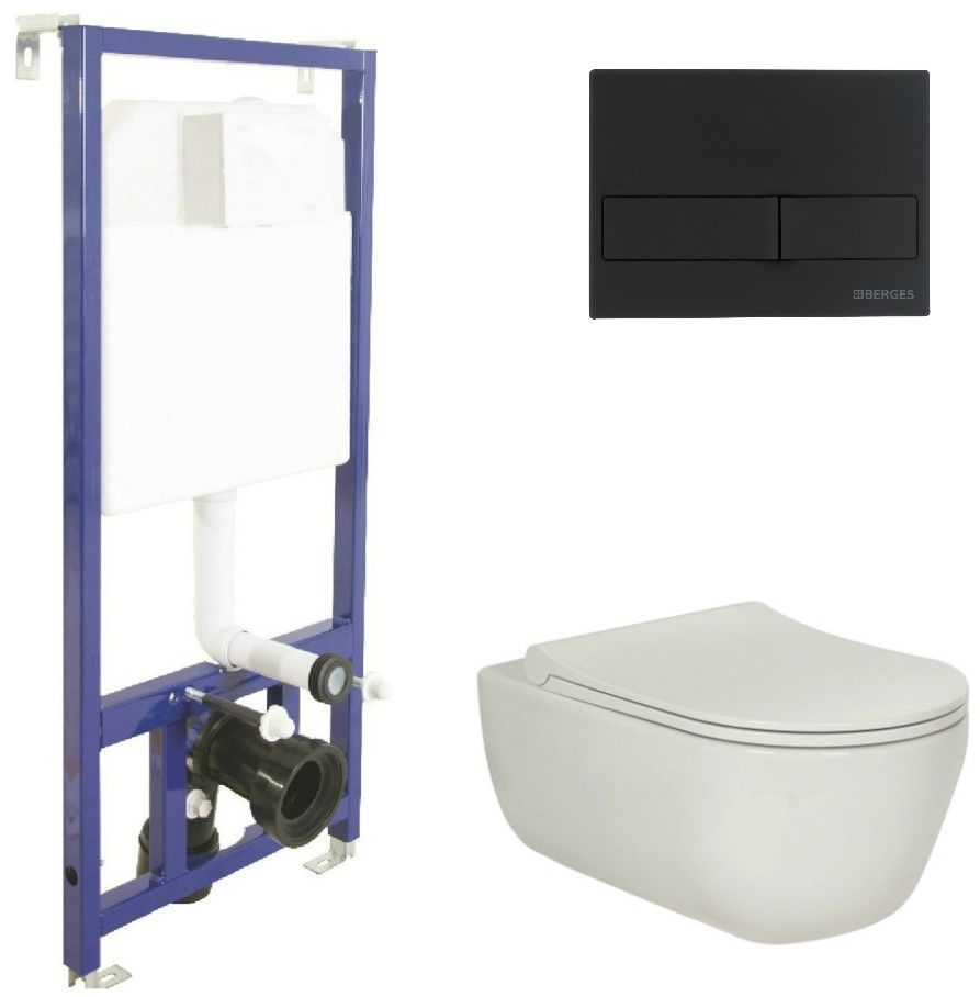 Комплект Berges 4в1 043204: инсталляция NOVUM525 кнопка L5 SoftTouch чёрная унитаз EGO XL Rimless сиденье Toma Slim SO