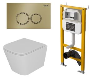 Комплект D&K Унитаз подвесной безободковый DT1436016, Инсталляция DI8050127, Клавиша смыва DB1529007 матовое золото (DS1431630) купить