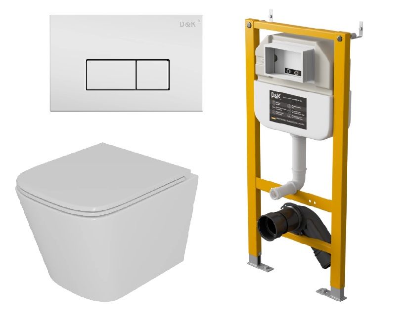 Комплект D&K Унитаз подвесной безободковый (торнадо) DT1436516, Инсталляция DI8050127, Клавиша смыва DB1499016 белый (DS1431622) купить