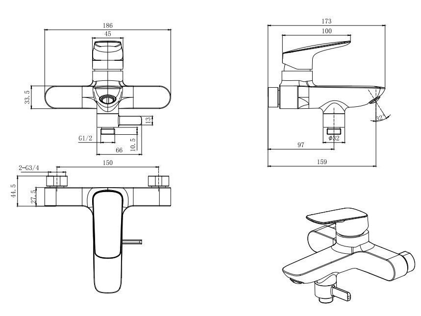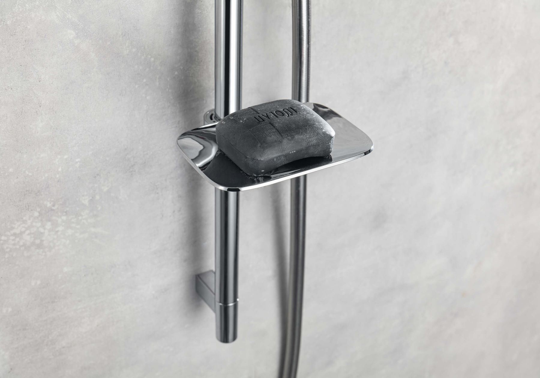 В комплекте: душевая штанга; держатель душевой лейки; душевая лейка ; душевой шланг из ПВХ ; мыльница; монтажный комплект