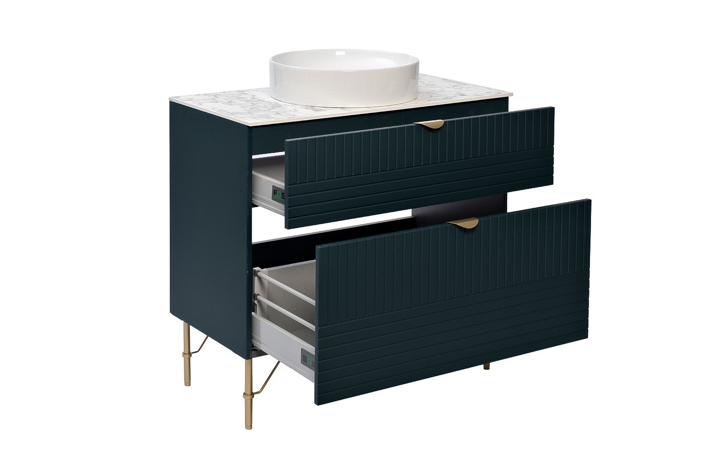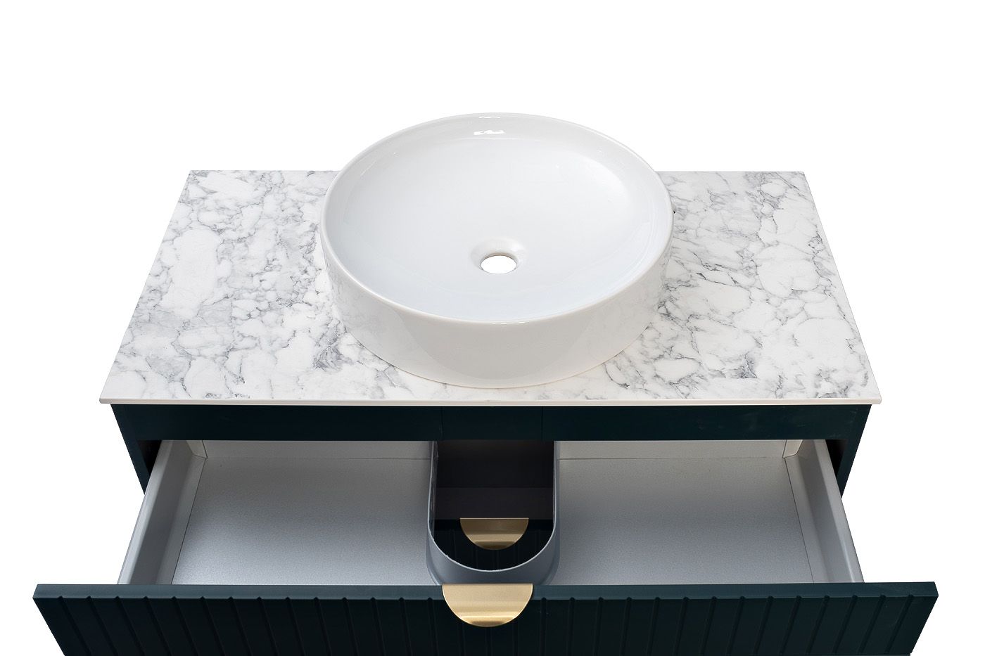 Серия Monte Lux: Напольные тумбы с HPL-столешницей и роскошной палитрой Производитель: Европейский дизайн ----------------------Базовые модели Артикул Модель Габариты тумбы (Ш?Г?В) Раковина в комплекте (Ш?Г?В) 14000015 Monte Lux Compact 910 ? 846 ? 460 мм 430 ? 105 ? ? мм 14000014 Monte Lux (Стандарт) 910 ? 846 ? 460 мм 902 ? 40 ? 460 мм ----------------------Ключевые характеристики - Конструкция: - Тип установки: Напольный (стабильная основа для массивных столешниц). - Базовый модуль: 2 вместительных выдвижных ящика. - Материалы: - Корпус/фасад: МДФ с декоративной плёнкой (толщина до 20 мм). - Столешница: HPL-пластик 10 мм (ударопрочный, влагостойкий). - Дизайн: - Поверхность: Матовая. - Цвета: Эксклюзивная палитра — Зеленый, Золотой (премиальный акцент). ----------------------Особенности комплектации ? Monte Lux Compact: - Уменьшенная раковина (глубина 105 мм) — идеальна для помещений с ограниченным пространством.? Monte Lux (Стандарт): - Полноразмерная раковина (ширина 902 мм) — функциональное решение для просторных ванн. ----------------------Технологические преимущества Критерий Детализация Прочность Усиленный МДФ (20 мм) + HPL-столешница 10 мм (стойкость к царапинам, воде). Фурнитура Регулируемые системы полного выдвижения (европейское качество). Эргономика 2 глубоких ящика для хранения банных принадлежностей. Гигиеничность Гладкая матовая поверхность легко очищается. ----------------------Сравнение моделей Параметр Monte Lux Compact Monte Lux Стандарт Раковина Компактная (430?105 мм) Полноразмерная (902?40 мм) Целевое применение Малогабаритные ванные Просторные помещения Визуальный акцент Лаконичность Доминантный элемент интерьера ----------------------Рекомендации по стилизации • Золотой фасад: Создает акцент в интерьерах ар-деко или гламур.• Зеленый фасад: Подходит для эко-стиля или скандинавских концепций.• Комбинации: Сочетается с зеркалами в позолоченных рамах, хромированной сантехникой. ----------------------Серия Monte Lux — выбор для тех, кто ценит сочетание технологичности (HPL-столешница 10 мм, усиленный МДФ) и эстетической выразительности. Золотой вариант — эксклюзивное решение для создания роскошного интерьера ванной комнаты.