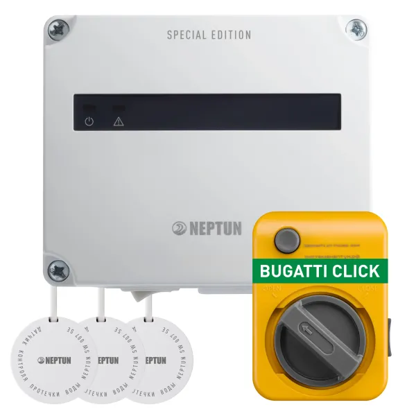 Комплект защиты от протечки воды NEPTUN BUGATTI SE Базовый (1 кран) предназначен для обнаружения и локализации протечек воды в домах и коттеджах, где подведено только холодное водоснабжение (в комплекте один кран) . Данный комплект построен на основе модуля управления Neptun Base - это простое, но при этом очень надежное устройство. Дополнительных функций не много, но если они Вам и не нужны, то это идеальное решение.