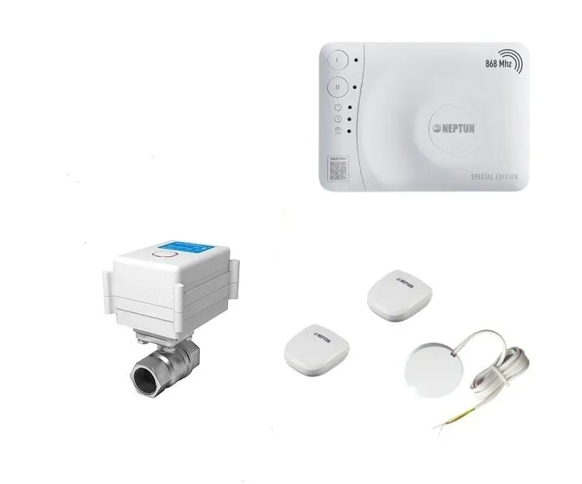Умная беспроводная система защиты от протечки воды NEPTUN SE MK Smart+Tuya (1 кран) предназначена для обнаружения и локализации протечек воды в системах водоснабжения в квартирах с газовой колонкой, где подведено только холодное водоснабжение (в комплекте один кран). Компоненты системы связаны и взаимодействуют друг с другом через центральный контроллер - модуль управления Neptun Smart+SE.