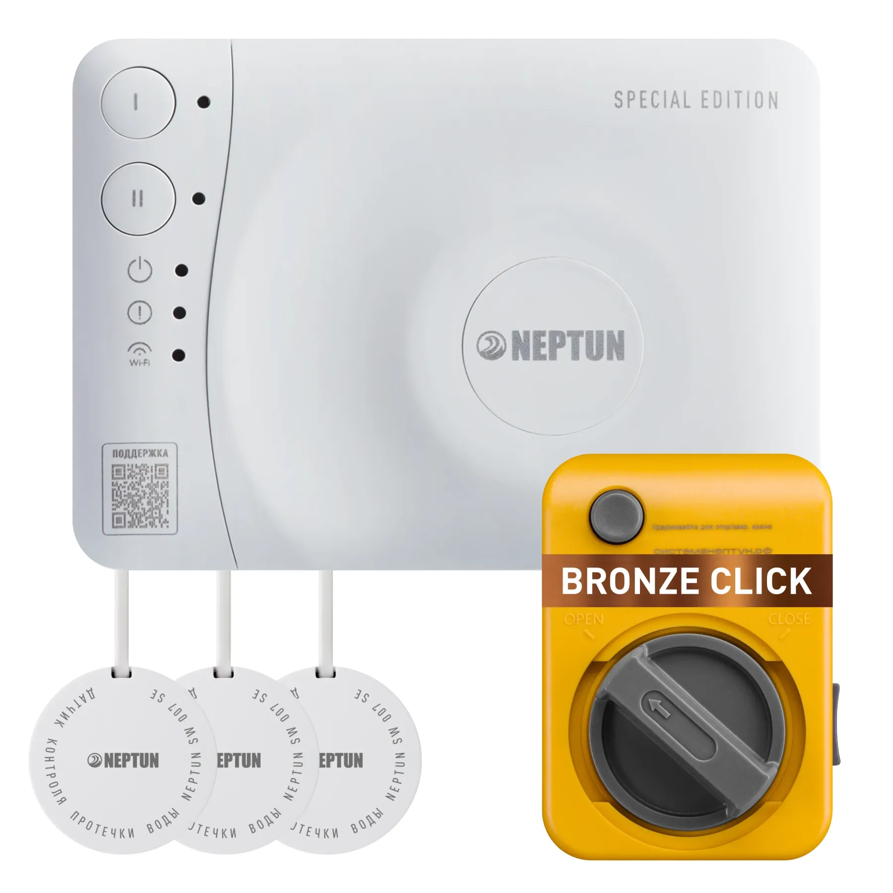 Умная система защиты от протечки воды NEPTUN BRONZE Click SE Smart Tuya (1 кран) предназначена для обнаружения и локализации протечек воды в системах водоснабжения в домах и коттеджах, где подведено только холодное водоснабжение (в комплекте один кран). Компоненты системы связаны и взаимодействуют друг с другом через центральный контроллер - модуль управления Neptun Smart SE.