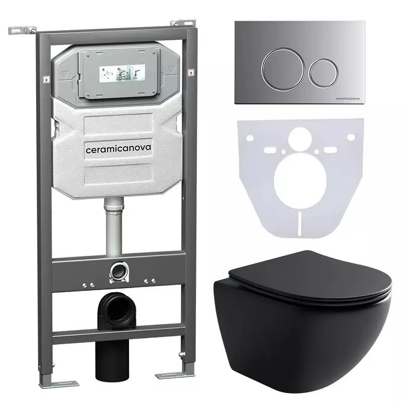 Комплект с инсталляцией Ceramica Nova CN4002MB_1001M_1000 унитаз Metropol CN4002MB крышка-сиденье с микролифтом и инсталляция Envision CN1001M с кнопкой смыва хром матовый Round купить