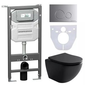 Комплект с инсталляцией Ceramica Nova CN4002MB_1001M_1000 унитаз Metropol CN4002MB крышка-сиденье с микролифтом и инсталляция Envision CN1001M с кнопкой смыва хром матовый Round