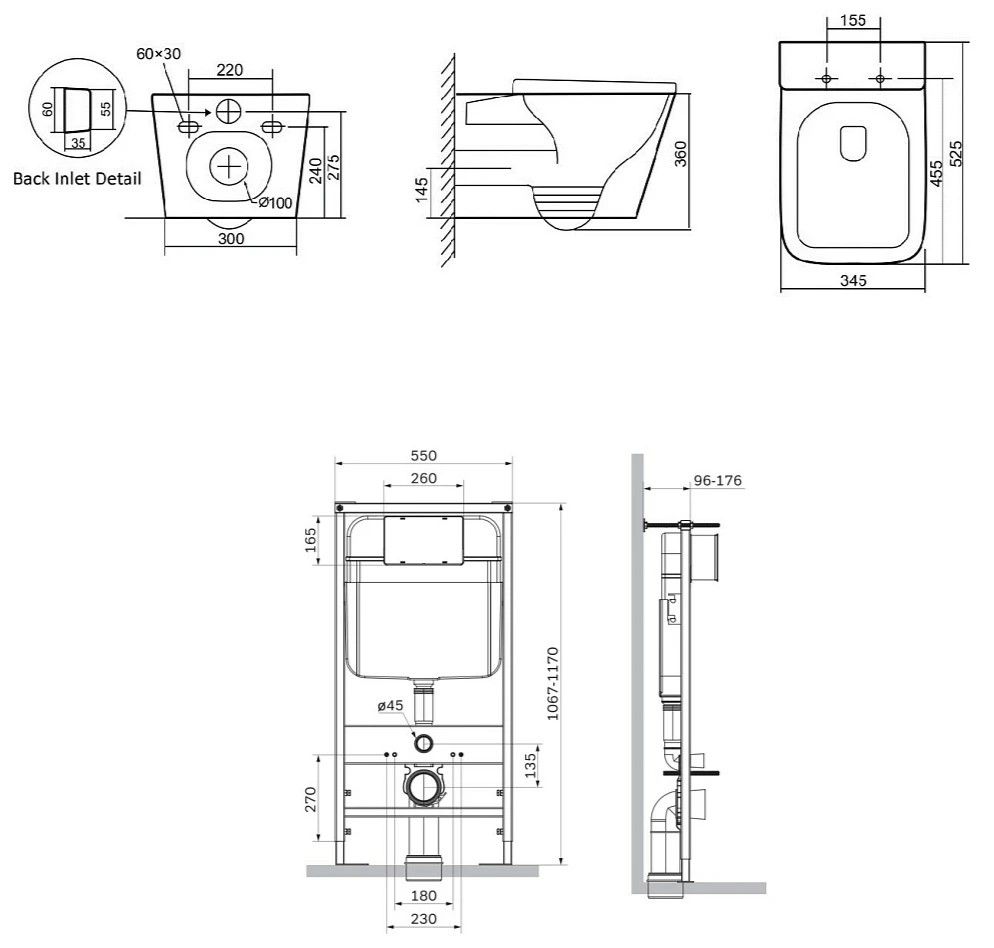 - Расстояние между болтами для монтажа унитаза: 18 см.