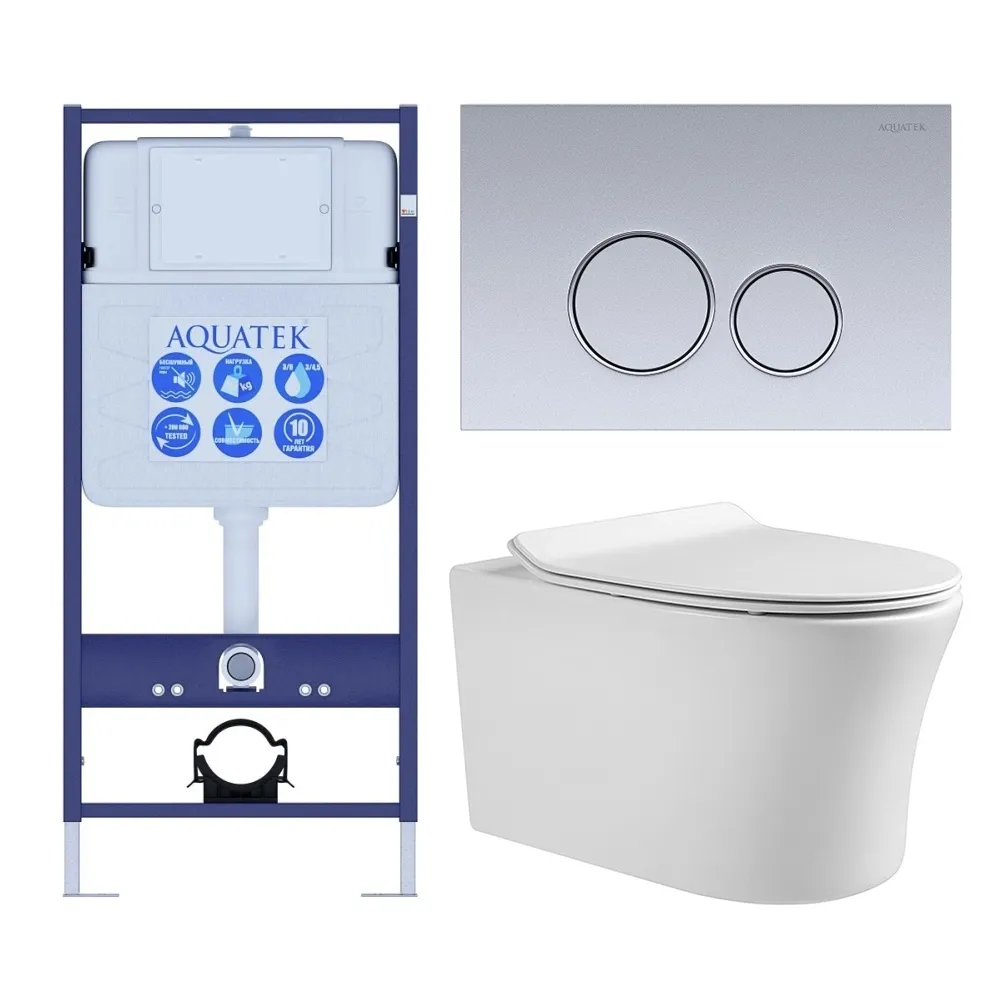 Комплект SET AQUATEK НИКА-019 4в1 унитаз с инсталляцией кнопкой и сиденьем микролифт купить