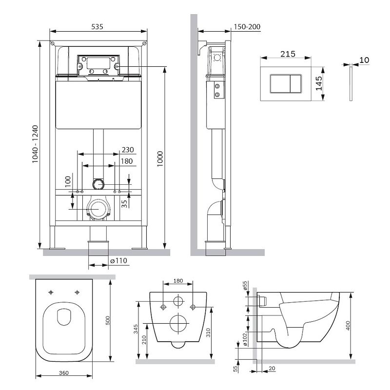 Тип:комплект: инсталляция с унитазом