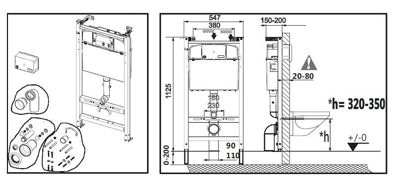 Инсталляция.Клавиша смыва приобретается отдельно.