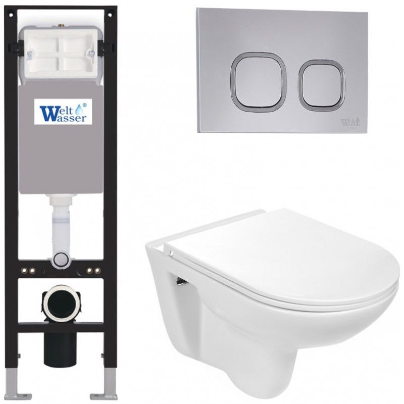 Комплект унитаза с инсталляцией WeltWasser Amberg 350 + Baarbach 004 GL-WT + Amberg RD-CR 10000012285 белый глянец