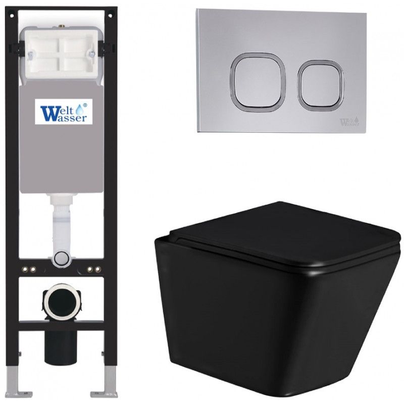 Комплект унитаза с инсталляцией Weltwasser Amberg 350 + Gelbach 043 GL-BL + Amberg RD-CR 10000013545 черный глянцевый купить