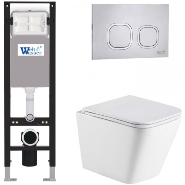 Комплект унитаза с инсталляцией Weltwasser Amberg 350 + Gelbach 043 GL-WT + Amberg RD-MT CR 10000012316 белый глянцевый