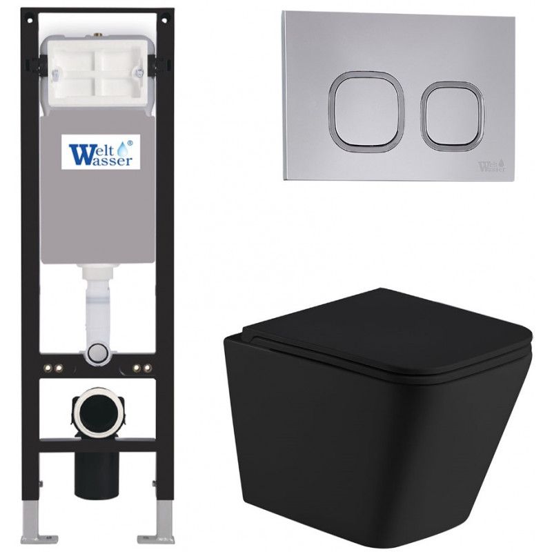 Комплект унитаза с инсталляцией Weltwasser Amberg 350 + Gelbach 043 MT-BL + Amberg RD-CR 10000012320 черный матовый