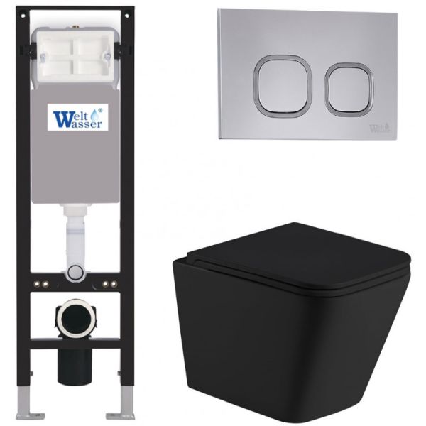 Комплект унитаза с инсталляцией Weltwasser Amberg 350 + Gelbach 043 MT-BL + Amberg RD-CR 10000012320 черный матовый купить