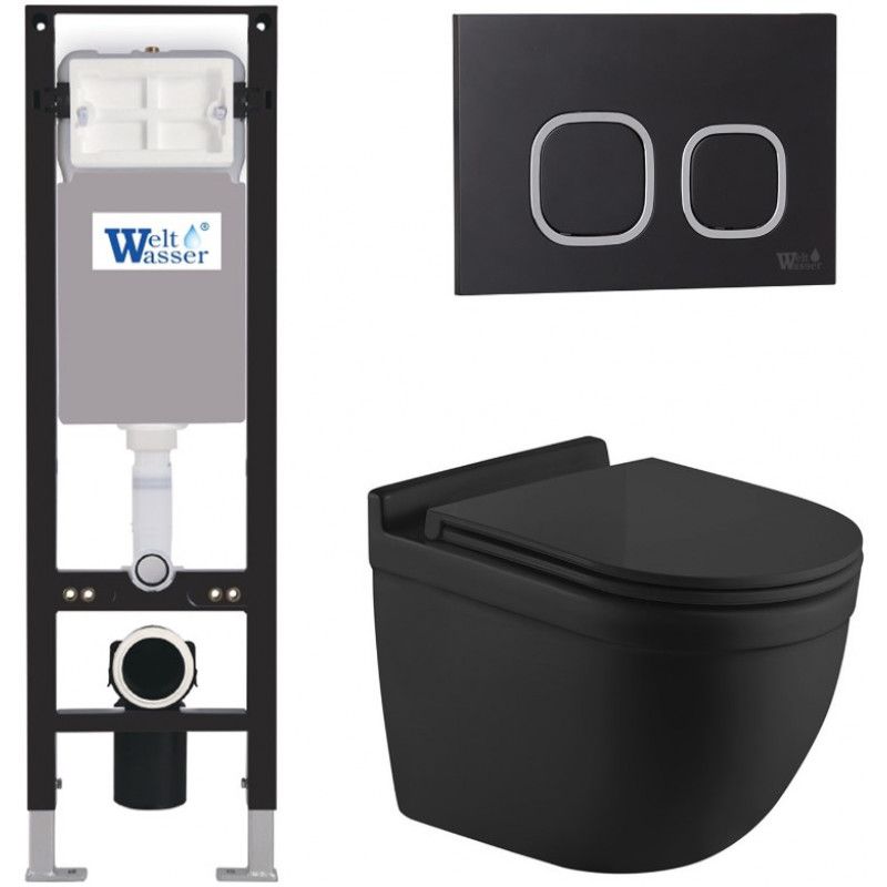 Комплект унитаза с инсталляцией WeltWasser Amberg 350 + Heimbach 043 MT-BL + Amberg RD-BL 10000012334 черный матовый купить