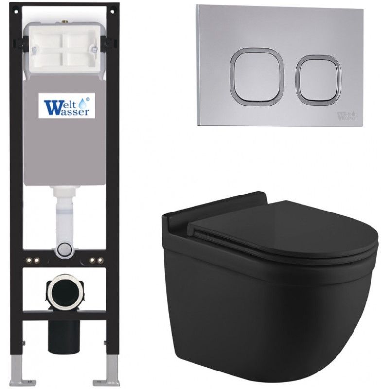 Комплект унитаза с инсталляцией WeltWasser Amberg 350 + Heimbach 043 MT-BL + Amberg RD-CR 10000012335 черный матовый купить