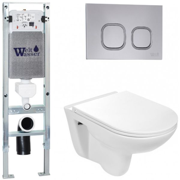Комплект унитаза с инсталляцией Weltwasser Amberg 350 ST + Baarbach 004 GL-WT + Amberg RD-CR 10000006501 белый глянец купить