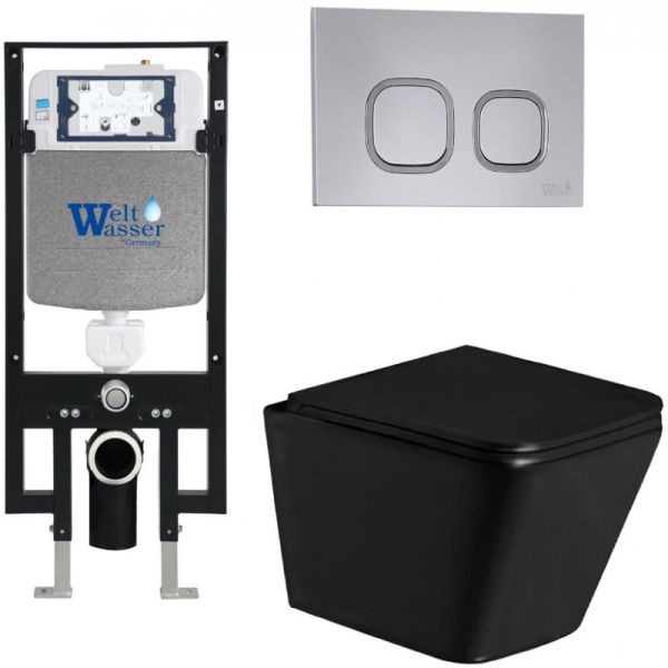 Комплект унитаза с инсталляцией Weltwasser Amberg 497 + Gelbach 043 GL-BL + Amberg RD-CR 10000011932 черный глянцевый купить