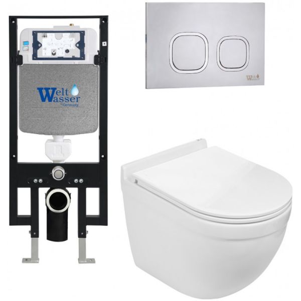 Комплект унитаза с инсталляцией WeltWasser Amberg 497 + Heimbach 043 GL-WT + Amberg RD-MT CR 10000012138 белый глянцевый купить