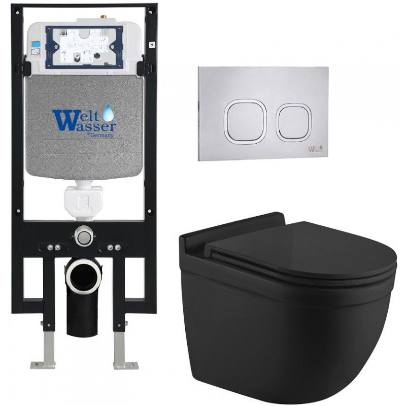Комплект унитаза с инсталляцией WeltWasser Amberg 497 + Heimbach 043 MT-BL + Amberg RD-MT CR 10000012228 черный матовый купить