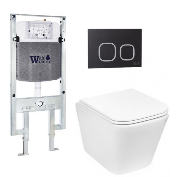 Комплект унитаза с инсталляцией Weltwasser Amberg 497 ST + Gelbach 043 GL-WT + Amberg RD-BL 10000011856 белый глянцевый