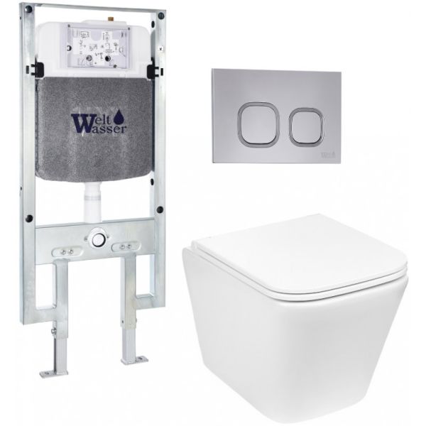 Комплект унитаза с инсталляцией Weltwasser Amberg 497 ST + Gelbach 043 GL-WT + Amberg RD-CR 10000011857 белый глянцевый