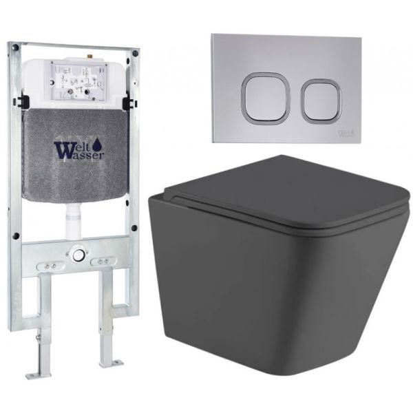 Комплект унитаза с инсталляцией Weltwasser Amberg 497 ST + Gelbach 043 MT-GR + Amberg RD-CR 10000012021 серый матовый купить