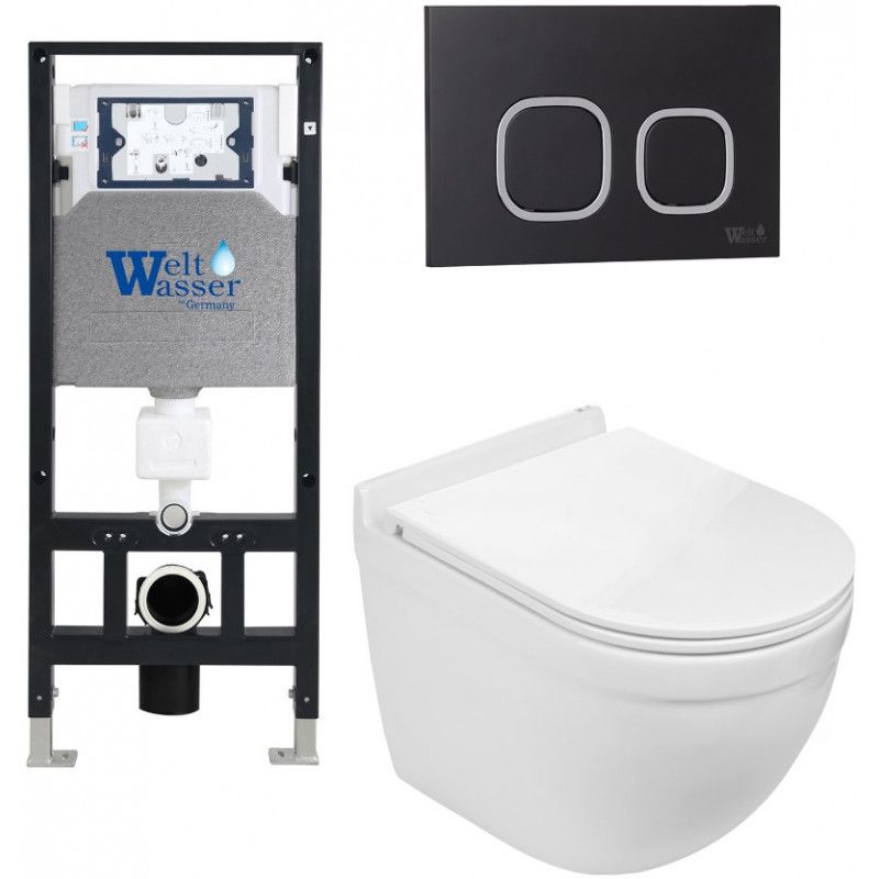Комплект унитаза с инсталляцией WeltWasser Amberg 506 + Heimbach 043 GL-WT + Amberg RD-BL 10000012146 белый глянцевый купить