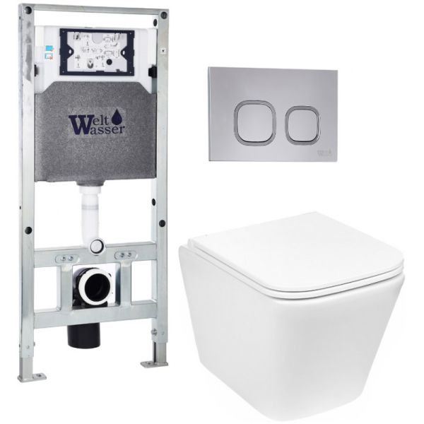 Комплект унитаза с инсталляцией Weltwasser Amberg 506 ST + Gelbach 043 GL-WT + Amberg RD-CR 10000011867 белый глянцевый