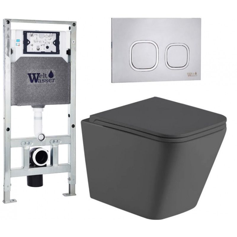 Комплект унитаза с инсталляцией Weltwasser Amberg 506 ST + Gelbach 043 MT-GR + Amberg RD-MT CR 10000012032 серый матовый купить