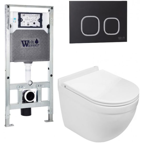 Комплект унитаза с инсталляцией WeltWasser Amberg 506 ST + Heimbach 043 GL-WT + Amberg RD-BL 10000012151 белый глянцевый купить