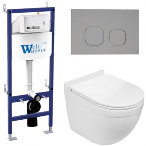 Комплект унитаза с инсталляцией WeltWasser Bamberg 460 + Heimbach 043 GL-WT + Bamberg CR 10000012820 белый глянцевый купить