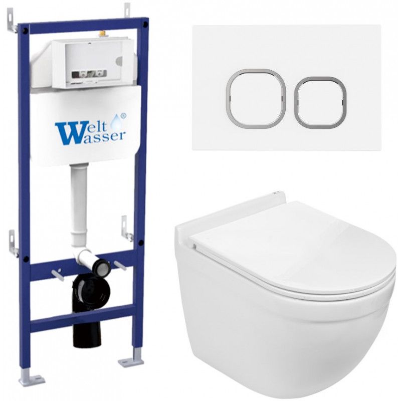 Комплект унитаза с инсталляцией WeltWasser Bamberg 460 + Heimbach 043 GL-WT + Bamberg WT 10000012821 белый глянцевый купить