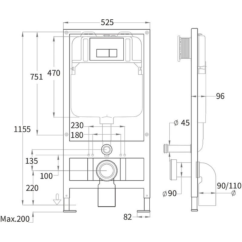 - Ширина инсталляции, см:52.5