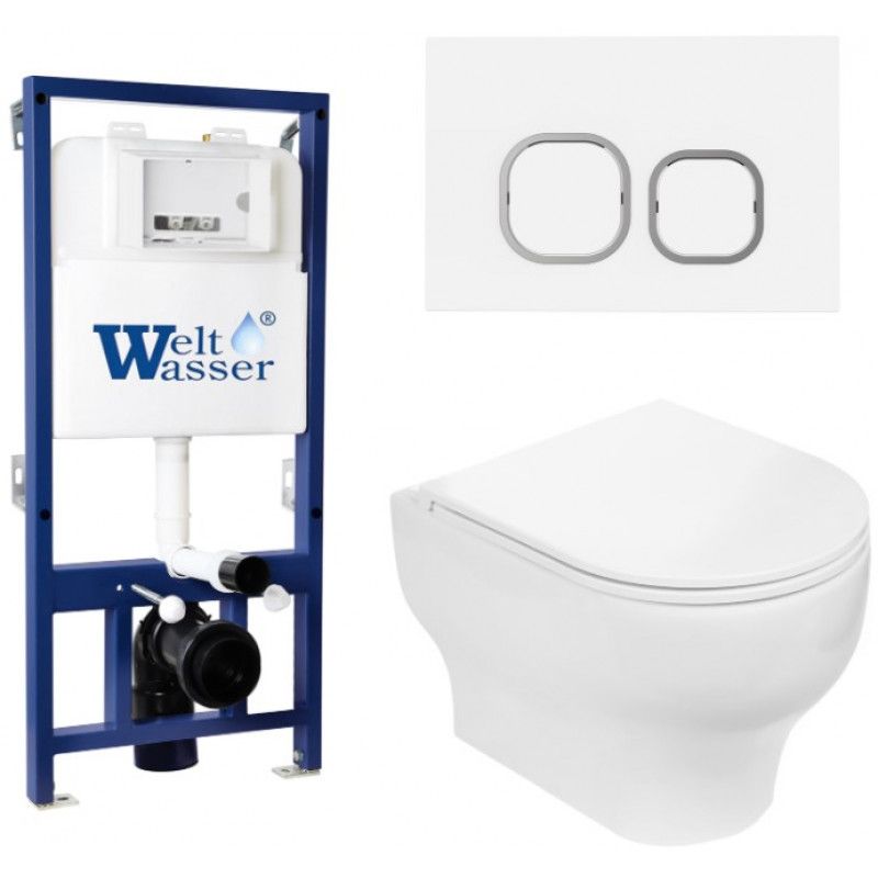 Комплект унитаза с инсталляцией WeltWasser Bamberg 525 + Erlenbach 004 GL-WT + Bamberg WT 10000010369 белый глянцевый купить