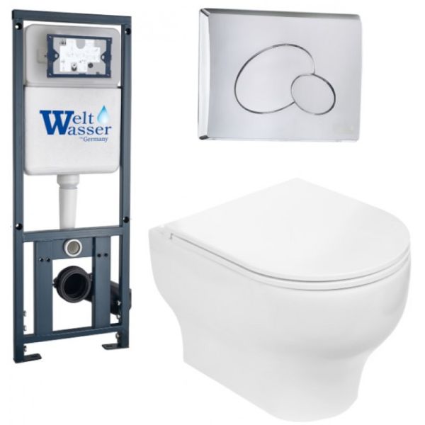 Комплект унитаза с инсталляцией WeltWasser Marberg 410 + Erlenbach 004 GL-WT + MAR 410 RD-CR 10000006464 белый глянцевый купить