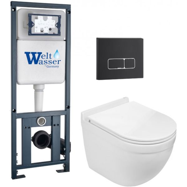 Комплект унитаза с инсталляцией WeltWasser Marberg 410 + Heimbach 043 GL-WT + MAR 410 SE MT-BL 10000012161 белый глянцевый