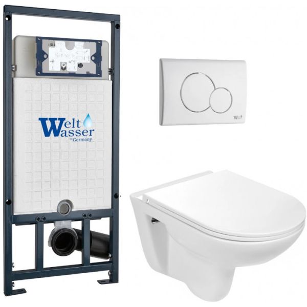 Комплект унитаза с инсталляцией WeltWasser Marberg 507 + Baarbach 004 GL-WT + MAR 507 RD GL-WT 10000010358 белый глянцевый