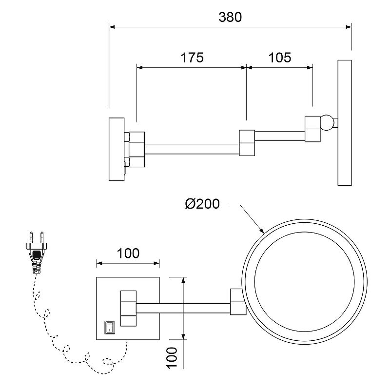 Косметическое зеркало Timo Luiro 18474/17, 20 см, с подсветкой, 5х увеличение, цвет золото матовое