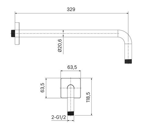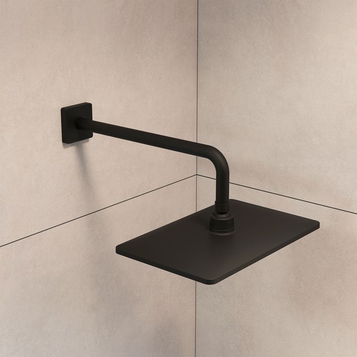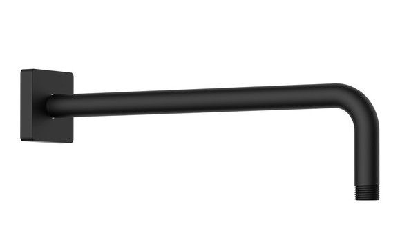 Черный матовый Г-образный настенный кронштейн для верхней душевой лейки. Круглое сечение, длина 329 мм. Совместим с любыми черными верхними лейками IDDIS® с подключением G 1/2, а также с лейками других производителей.