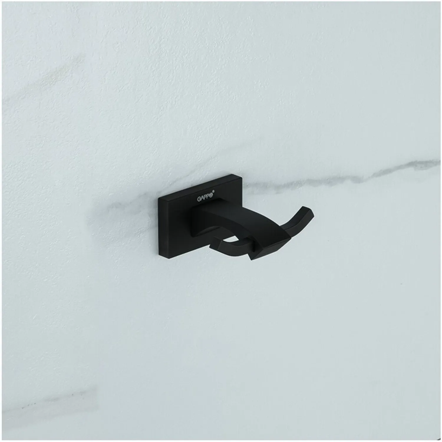 Двойной настенный черный крючок в ванную Gappo G0705-26, изготовлен из латуни.