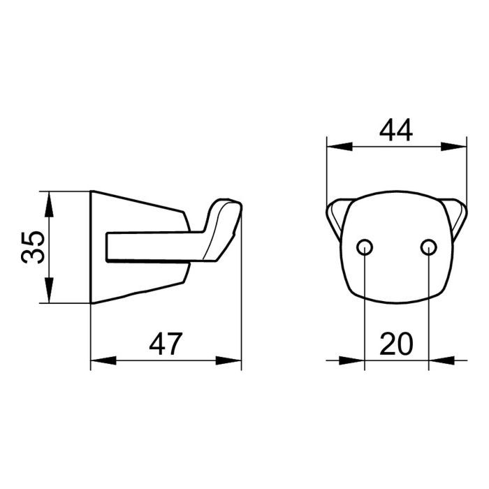 Ширина 44 мм, высота 35 мм, разгрузка 47 мм