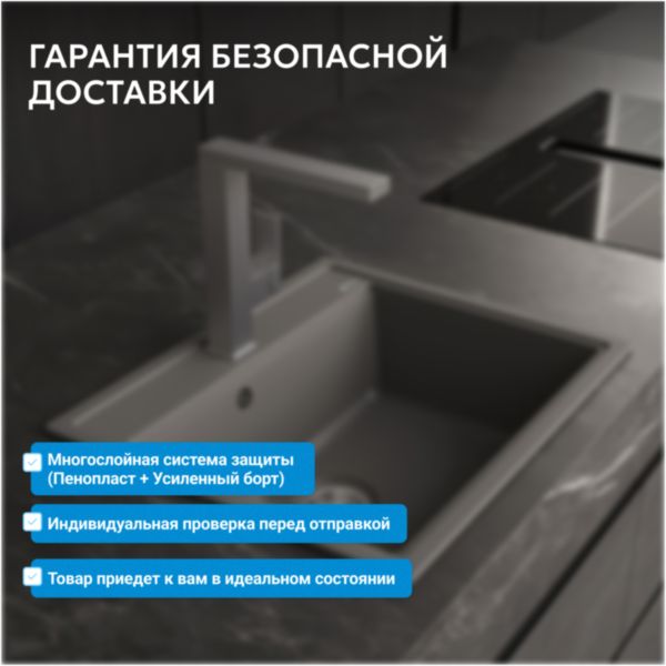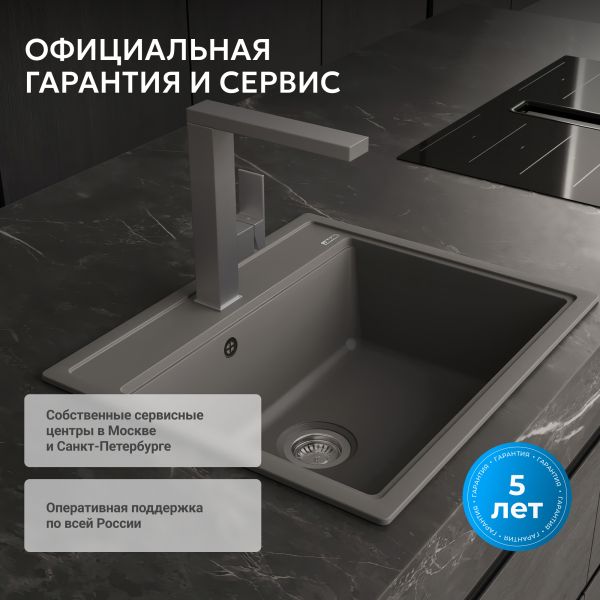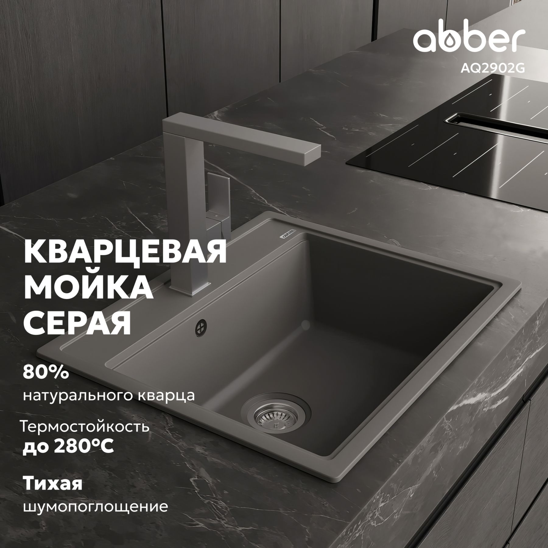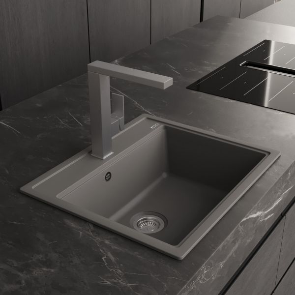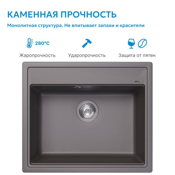 Кухонные мойки ABBER из кварцевого композита — это долговечность, надежность и простота в уходе. Серая кварцевая мойка 60х51х21,7см органично сочетается с любым стилем, от модерна до классики. Вы можете выбрать мойку с крылом или без. Чтобы очистить мойку, не нужно использовать какие-то специализированные средства. Кварцевая мойка не боится повреждений, не окрашиваются продуктами. Как натуральный камень, но лучше и дешевле!