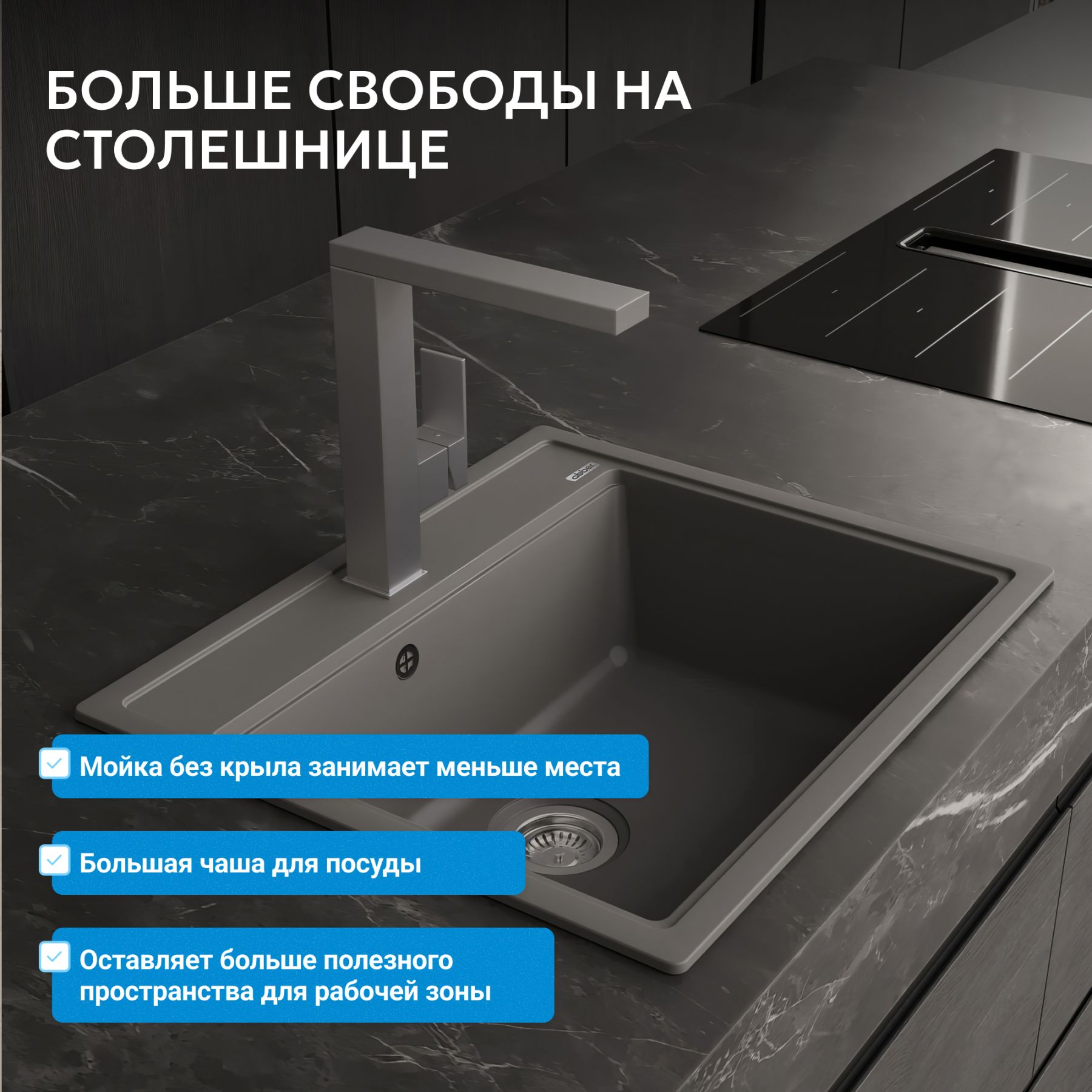 Преимущества кухонных моек ABBER Quarz из кварцевого композита: